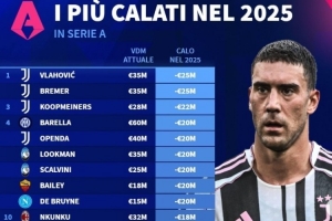 體育資訊1月1日訊 2025年已經(jīng)結(jié)束,《轉(zhuǎn)會(huì)市場》也統(tǒng)計(jì)了意甲年度身價(jià)跌幅榜,弗拉霍維奇和布雷默并列最多。